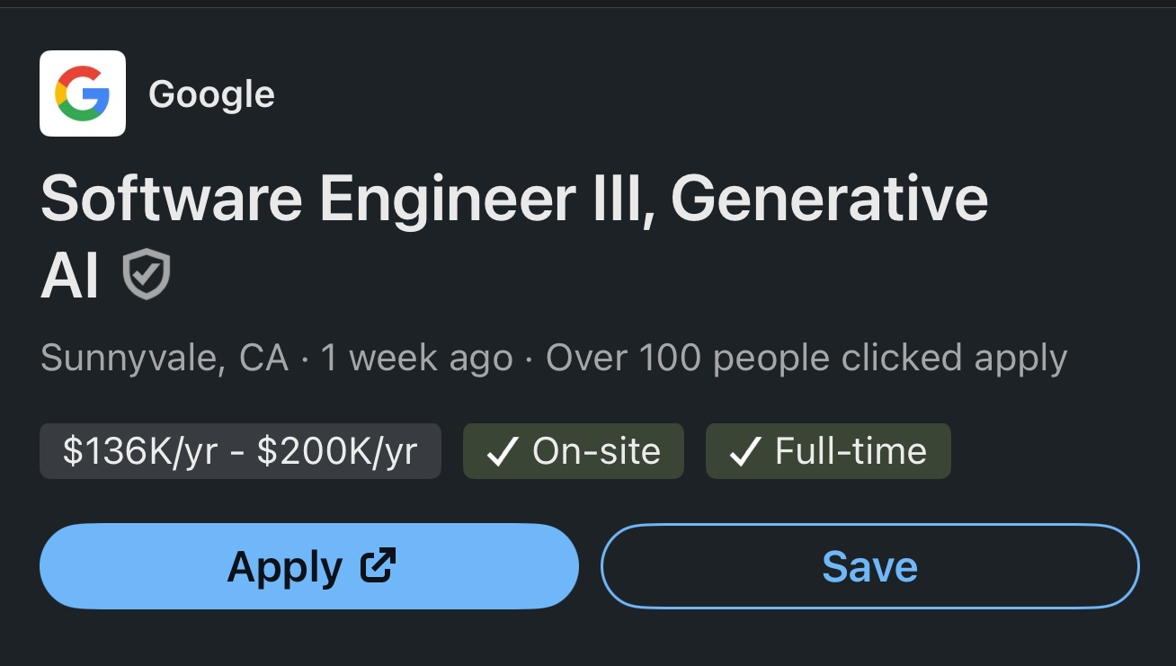 Google recently posted a role for a Generative AI Engineer — paying up to $200,000/year.